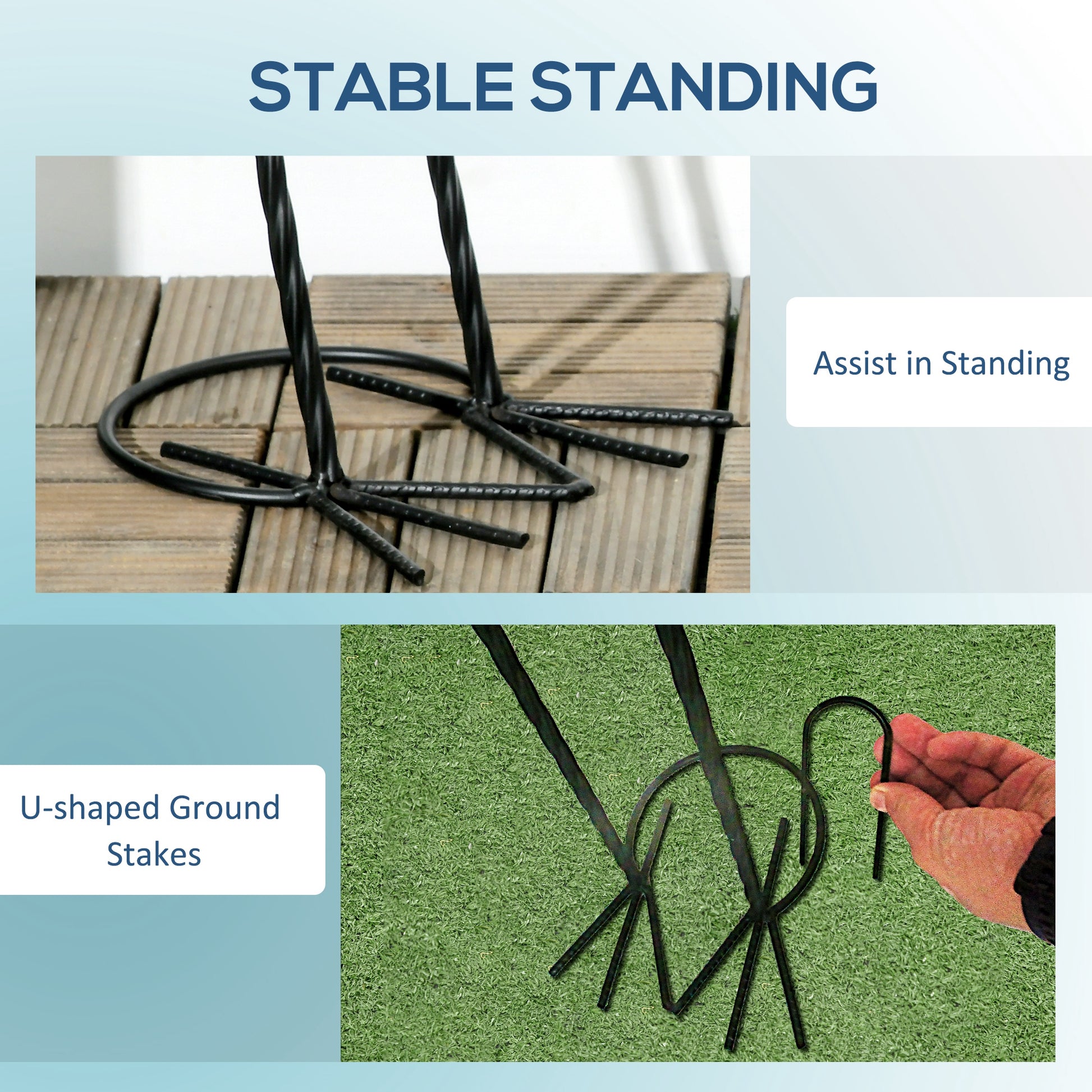 Garden lacking an accent? Looking for an eye-catching decorative piece to bring it all together? Let yard art sculptures bring life to your garden. This set features a large and a small heron with graceful poses, bright colors, and vivid details. Built to withstand outdoor elements, these steel lawn statues are protected with an e-coat and a powder coat. Their bases offer a structure less likely to fall over with a reinforcing circle and four U-shaped ground stakes.